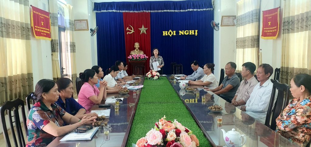 Đ/c Đoàn Thị Nhung – Chủ tịch Hội Nông dân huyện Vĩnh Bảo đánh giá kết quả thực hiện nhiệm vụ 8 tháng đầu năm, triển khai nhiệm vụ 4 tháng cuối năm 2023 tại xã Nhân Hòa