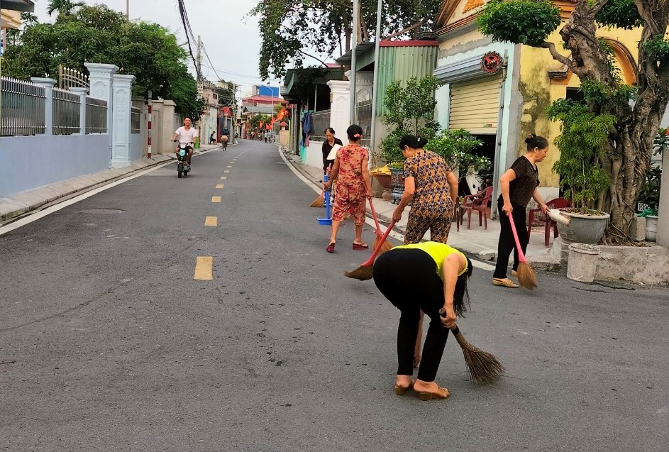 Hội viên nông dân phường Hưng Đạo, quận Dương Kinh dọn dẹp vệ sinh tuyến đường trên địa bàn phường