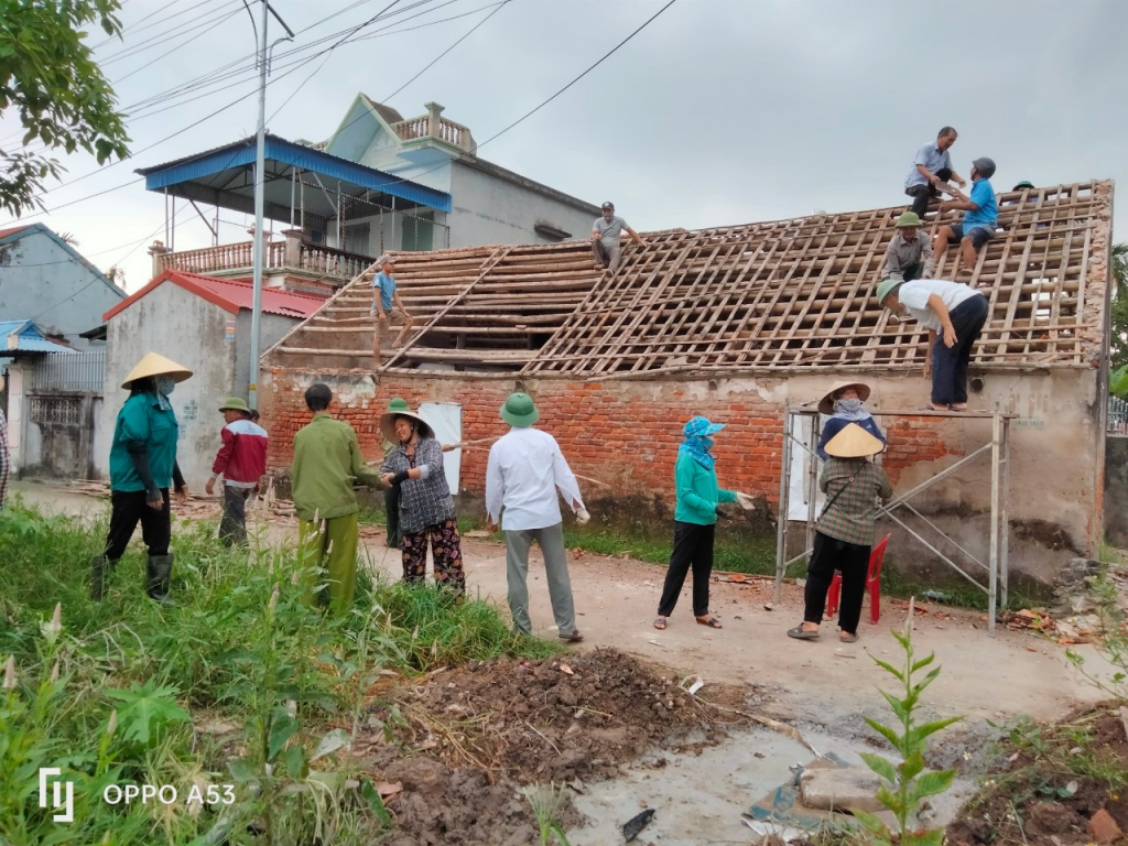 Cán bộ, hội viên nông dân xã hỗ trợ gia đình hội viên tháo dỡ công trình giải phóng mặt bằng