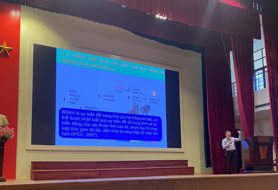 Ông Hà Quang Anh – giám đốc trung tâm phát triển carbon thấp Cục biến đổi khí hậu báo cáo tại Hội nghị
