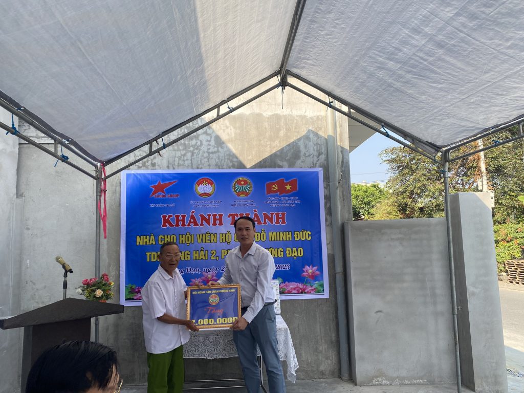 Thực hiện Chương trình công tác năm 2023 của Hội Nông dân quận Dương Kinh, trong ngày 28/11/2023, được sự nhất trí của Hội Nông dân Thành phố, Hội Nông dân phối hợp với UB MTTQ Việt Nam quận Dương Kinh, Công ty Cổ phần tập đoàn đầu tư Sao Đỏ đã khánh thành, tổ chức khánh thành bàn giao hỗ trợ kinh phí xây 02 nhà tình nghĩa cho gia đình ông Đỗ Minh Đức sinh năm 1940 và ông Đỗ Văn Phải sinh năm 1947, Tổ dân phố Vọng Hải 2, phường Hưng Đạo, quận Dương Kinh đây là các hộ hội viên có hoàn cảnh đặc biệt khó khăn.