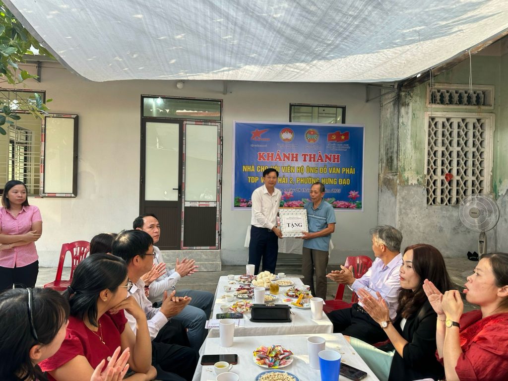 Về dự lễ khánh thành, có đồng chí Hoàng Văn Tường – Phó chủ tịch Hội Nông dân Thành phố; lãnh đạo Ban Kinh tế – xã hội, Hội Nông dân Thành phố; đồng chí Đoàn Thị Hiền, Phó Chủ tịch UBMTTQVN quận, đồng chí Hoàng Văn Nghĩa- Chủ tịch Hội Nông dân quận; đại diện lãnh đạo các ban ngành đoàn thể CTXH quận, lãnh đạo Đảng ủy-HĐND-UBND phường Hưng Đạo, cùng các ban, ngành, đoàn thể phường Hưng Đạo, đại diện gia đình các ông Đỗ Minh Đức và Đỗ Văn Phải. Kinh phí hỗ trợ được Ủy ban MTTQ Việt Nam quận vận động từ công ty CP tập đoàn đầu tư Sao Đỏ, Hội Nông dân quận vận động từ các nhà hảo tâm, cơ quan ban ngành khác, bà con xóm phố hỗ trợ vật tư, ngày công lao động… .