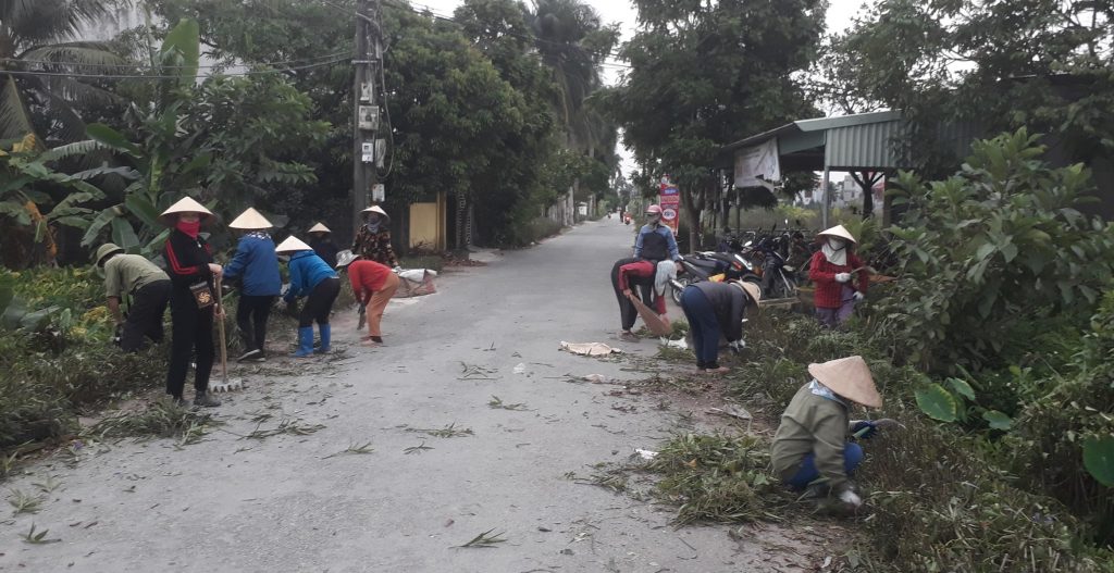 Hội viên nông dân phường Văn Đẩu dọn dẹp và chăm sóc tuyến đường do Hội Nông dân quản lý