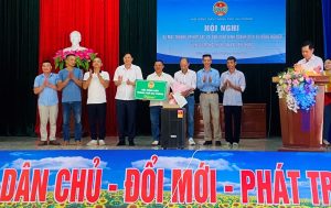 Đồng chí Hoàng Văn Tường – PCT Thường trực Hội Nông dân thành phố tặng hoa chúc mừng thành lập HTX “Sản xuất kinh doanh dịch vụ nông nghiệp” tại huyện Vĩnh Bảo