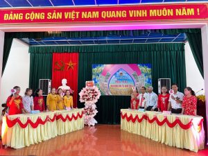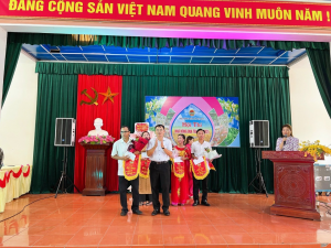 Đồng chí Hoàng Nhật Thọ – Phó Chủ tịch Hội Nông dân huyện Thuỷ Nguyên tặng hoa cờ lưu niệm cho các đội dự thi