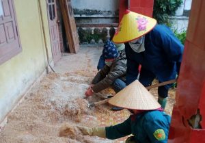 chị Hoàng Thị Mai cùng BCH chi Hội đang trộn mồi diệt chuột bảo vệ màng màng cho bà con