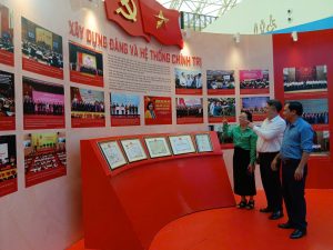 Các đồng chí lãnh đạo Hội Nông dân thành phố Hà Nội và Hải Phòng thăm khu trưng bày “Xây dựng Đảng và hệ thống chính trị”