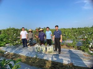 Đồng chí Nguyễn Đức Tuấn, Ủy viên Ban Thường vụ Thành ủy, Phó Chủ tịch Thường trực Ủy ban MTTQ Việt Nam TP kiểm tra công tác dọn vệ sinh môi trường và thăm mô hình trồng Ổi Lê tại xã Kim Thành.