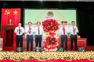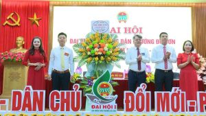 Đồng chí Đào Xuân Anh, Phó Chủ tịch Hội Nông dân thành phố tặng hoa chúc mừng Đại hội Hội Nông dân phường Trần Hưng Đạo lần thứ I, nhiệm kỳ 2025-2030.