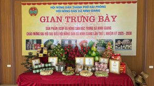 Gian hàng trưng bày sản phẩm tại Đại hội đại biểu Hội Nông dân xã Ninh Giang lần thứ I, nhiệm kỳ 2025-2030.