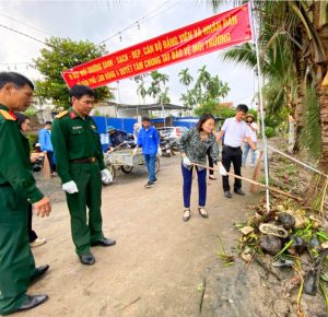 Cán bộ, nhân dân chung tay dọn vệ sinh, chỉnh trang đường làng ngõ xóm