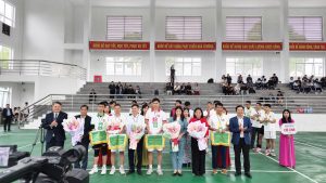 Lãnh đạo Hội Nông dân thành phố tặng hoa, cờ lưu niệm cho các đội tuyển bóng chuyền tham dự giải