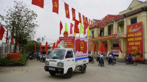 Đoàn tuyên truyền lưu động về cuộc bầu cử đại biểu Quốc hội và HĐND các cấp tại xã Hải Hưng.