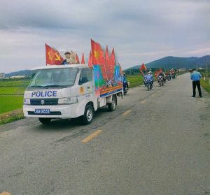Đoàn xe tuyên truyền lưu động của Hội Nông dân phường Chu Văn An diễu hành tuyên truyền về cuộc bầu cử trên các tuyến đường, khu dân cư.