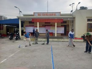 Hội viên nông dân xã Vĩnh Bảo ra quân vệ sinh môi trường, chỉnh trang cảnh quan nông thôn chào mừng ngày bầu cử.
